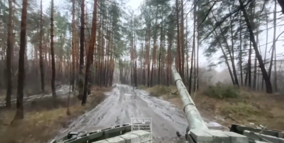 На кадрах показано, як танкісти батальйону розбирають російські позиції у лісах Луганської області.