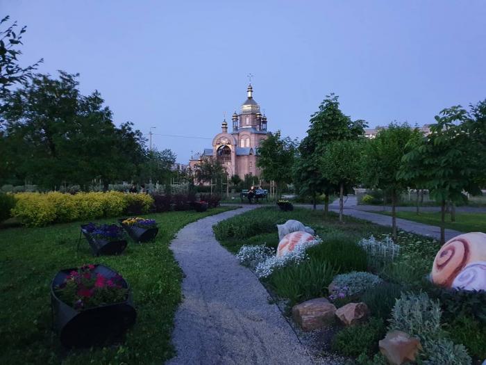 В екосквері, неподалік від місцевого храму, організована так звана "точка кормления", де місцеві жителі збираються, щоб отримати їжу. Цей факт ще раз підтверджує, що основні потреби людей на окупованих територіях не задовольняються належним чином. На фотографії, зробленій в одному з таких пунктів, можна побачити численних людей, які терпляче чекають своєї черги.