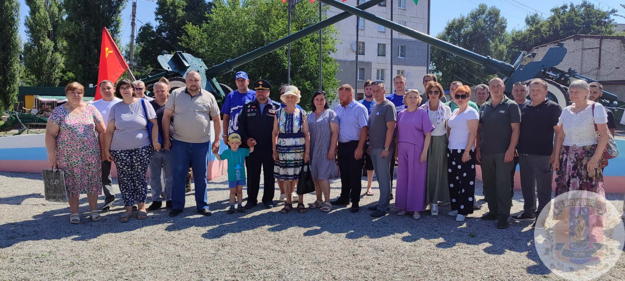 Біля "меморіалу" зібралися представники окупаційної "адміністрації", серед яких Едуард Сахненко, "герой ЛНР" Андрій Скорий та представники "ради депутатів". Також на заході були присутні кілька жителів міста, яких, ймовірно, примусили взяти участь у церемонії.