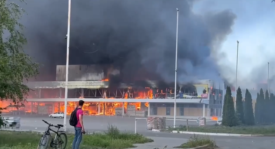 В окупованому Донецьку Донецької області спалахнула пожежа в торговому центрі "Галактика", розташованому в Петрівському районі міста.