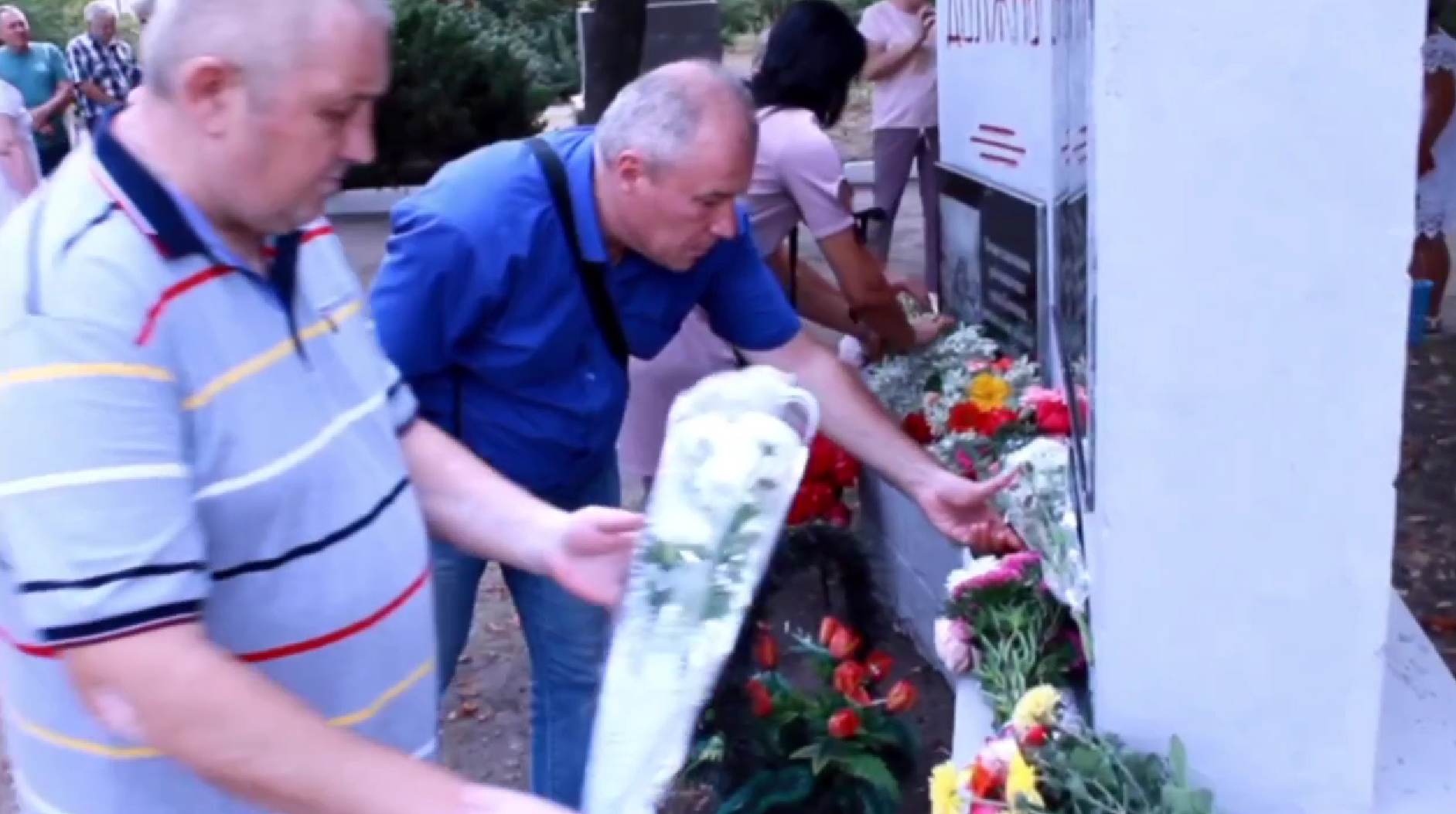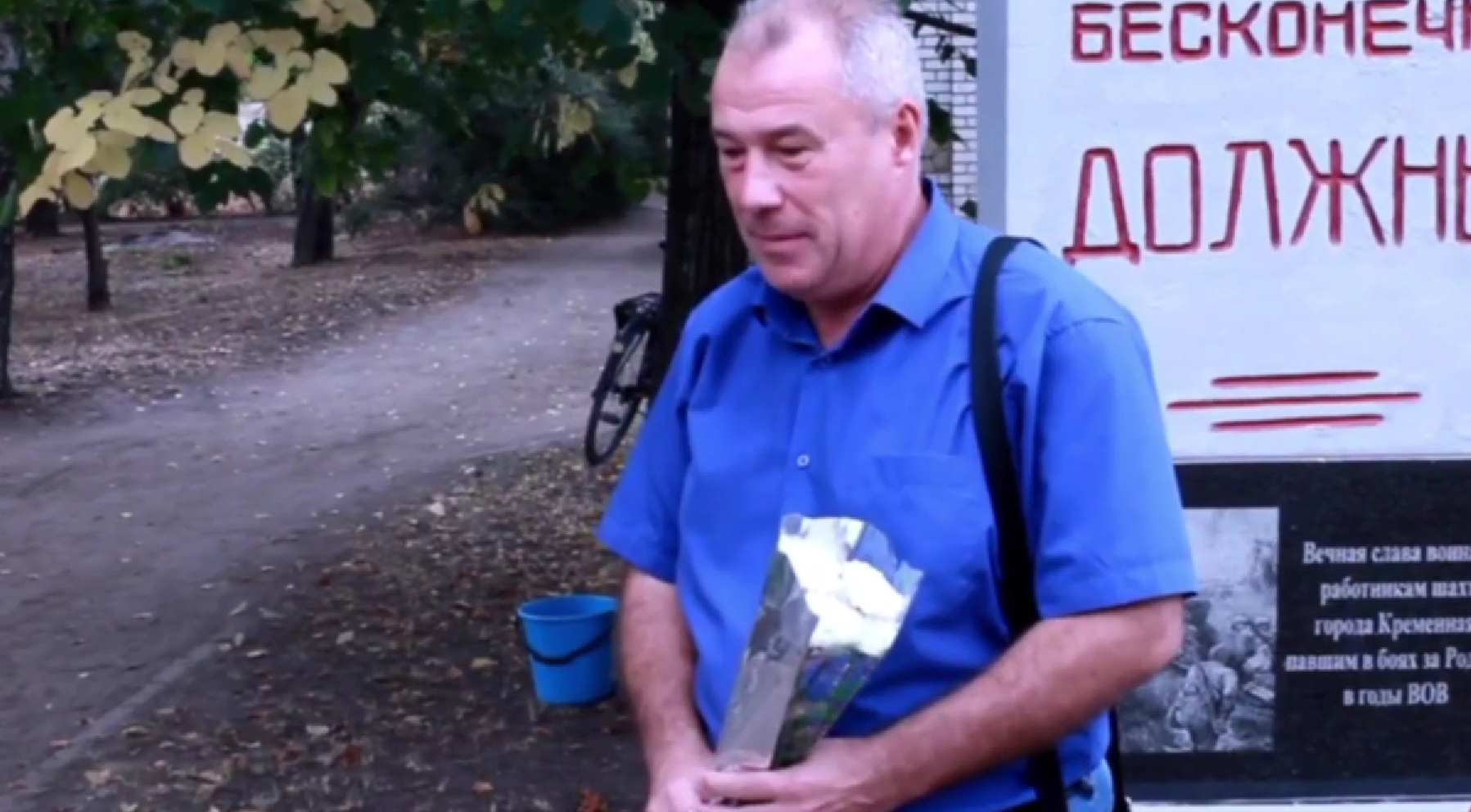 На знімках видно невелику групу місцевих шахтарів, близько 10 людей, які зібралися біля меморіалу. Люди, переважно похилого віку, стоять в очікуванні поздоровлень. На одному з фото, ймовірно, представник "адміністрації", виступає перед присутніми. На іншому знімку видно, як учасники покладають квіти на пам'ятник.