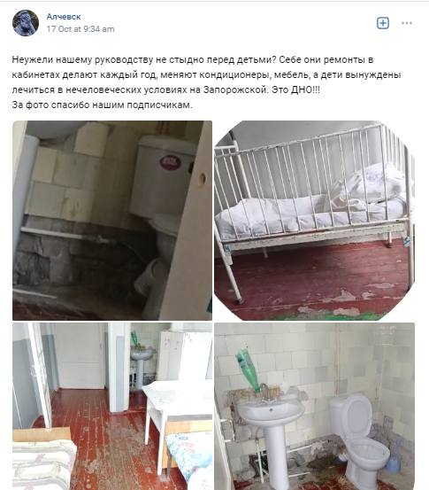 Жителі Алчевська Луганської області обурені жахливим станом місцевої дитячої лікарні, про що активно повідомляють у соцмережах.