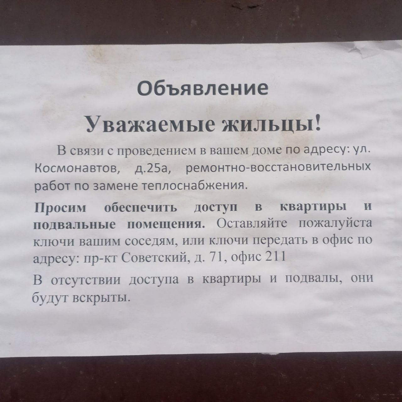 В тимчасово окупованому Сіверськодонецьку окупаційна влада зобов’язала мешканців забезпечити доступ до своїх квартир для нібито проведення ремонту теплопостачання. Відповідно до оголошення, розміщеного на будинках, жителям радять залишати ключі від квартир у сусідів або передавати їх до зазначеного офісу.