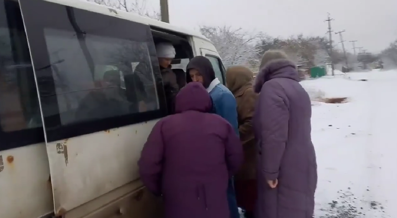 На відео російські волонтери показують автомобіль, оточений місцевими жителями, а також розповідають про свою діяльність.