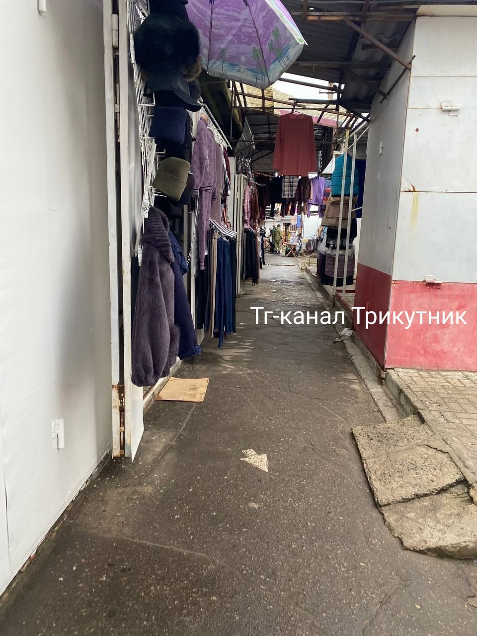 Фото було зроблено зовсім недавно - у січні 2025 року. Як можна побачити, на ринку торгівлі практично немає, як і людей. Багато кіосків порожні. Люди є лише там, де продаються продукти. Речі, вочевидь, нікого не цікавлять.
