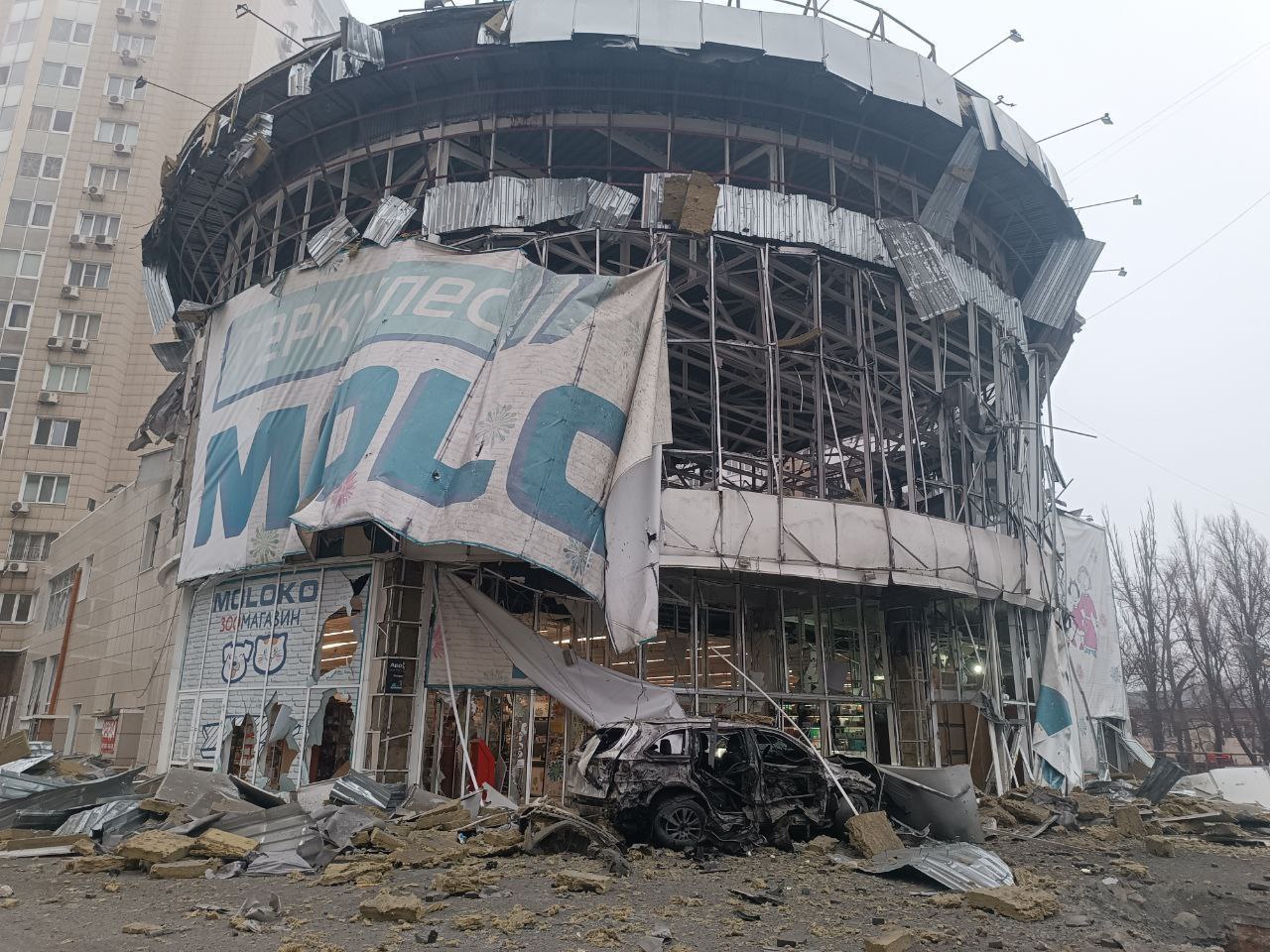 "Супермаркет в цей момент вже працював. Удар був такої сили, що снаряд провалився на підземну парковку, де ховалися люди. Зараз пожежники проливають автомобілі, щоб не спалахнули", - йдеться у повідомленні.