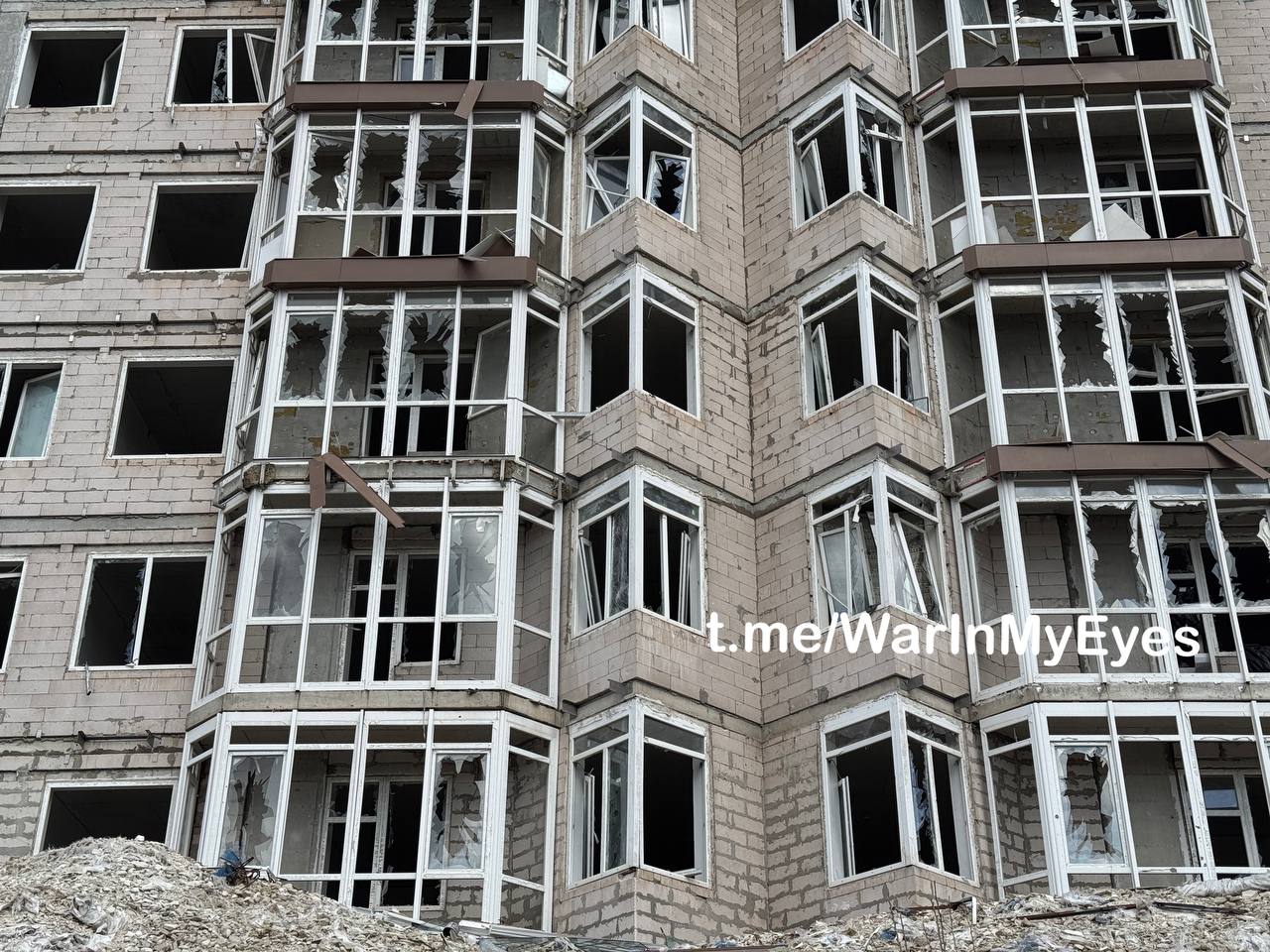 - житлових багатоквартирних будинках та автосалоні поблизу епіцентру удару.