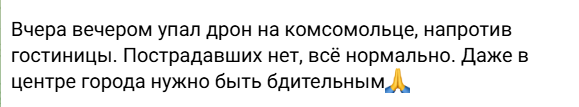 Увечері 20 травня у самому центрі окупованого Рубіжного Луганської області впав безпілотник.