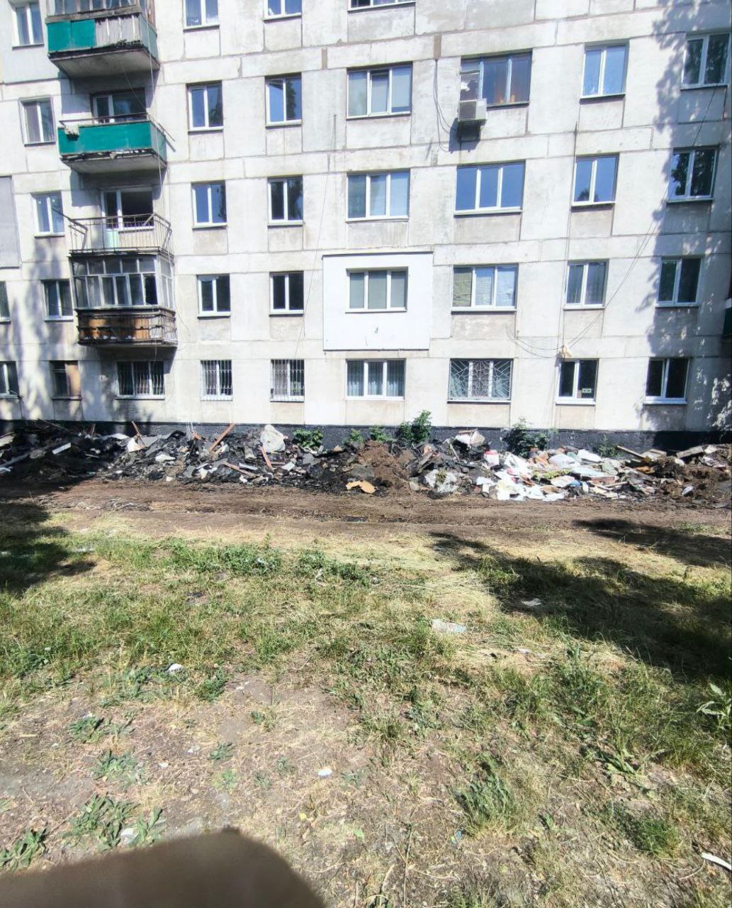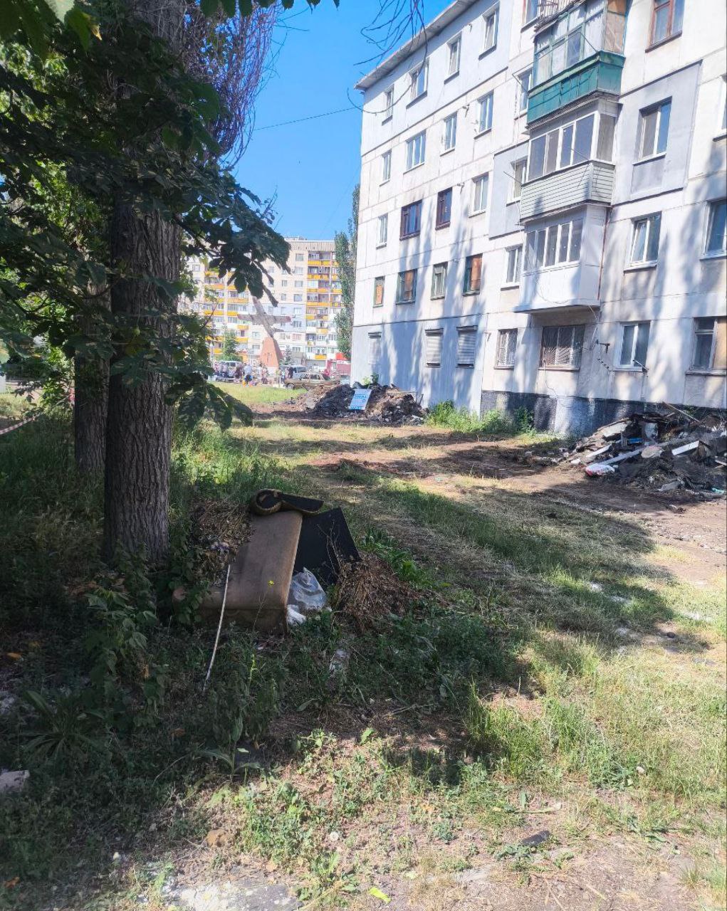 Фото датовані червнем цього року, вони були зроблені в районі ГТВ. Як можна побачити, навколо багатоповерхівок розростаються звалища сміття. Ці звалища складаються не тільки з уламків та осколків, але також і з речей, викинутих із квартир. Вивозом сміття, очевидно, ніхто не займається. Місто стає схожим на великий смітник.