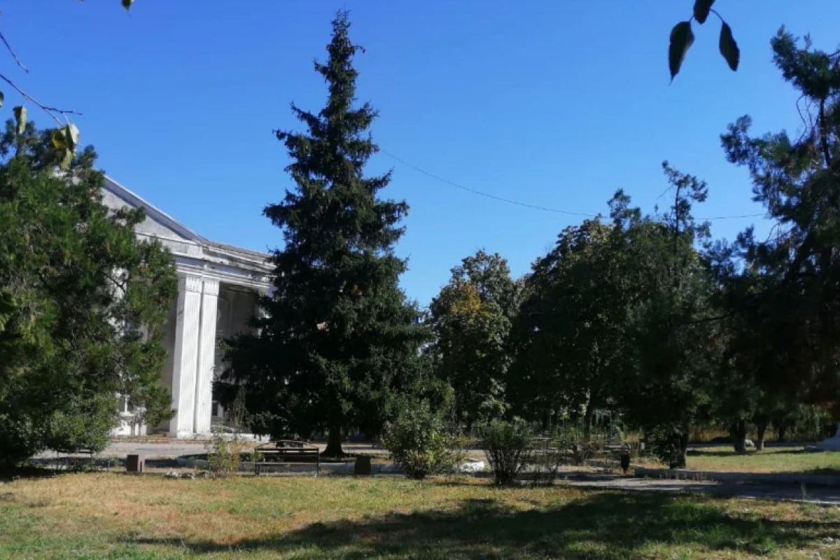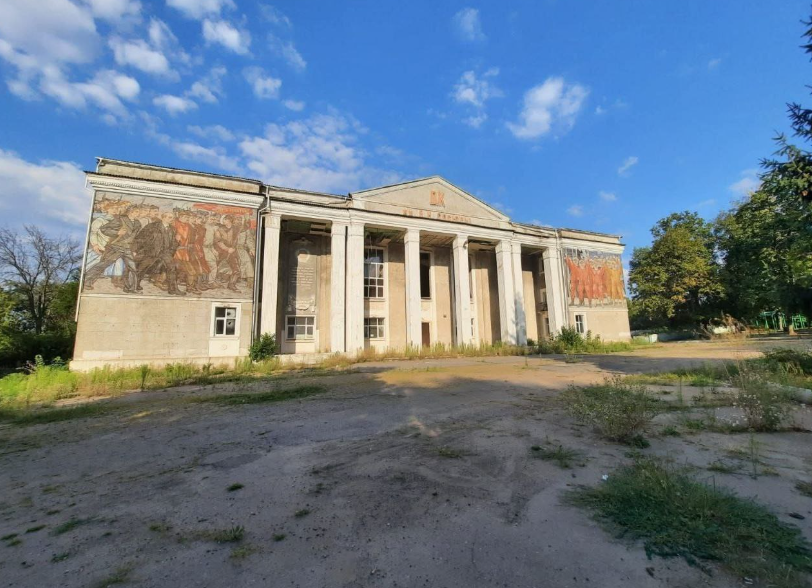 Будівля, яка раніше була центром культурного життя міста, сьогодні нагадує декорацію до фільму жахів. Потемнілі колони, вибиті вікна і штукатурка, що облупилася, створюють атмосферу занедбаності. Перед фасадом - порожня площа з асфальтом, що потріскався, і бур'янами, а на бічних стінах ледь тримаються вицвілі радянські мозаїки.