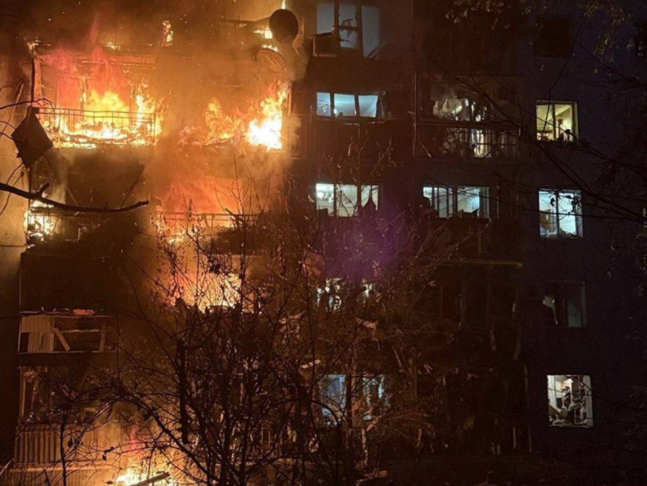 Внаслідок одного з ударів почалася сильна пожежа у багатоповерховому будинку. Відомо мінімум про трьох постраждалих.