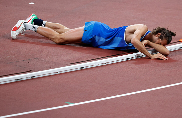Джанмарко дуже емоційно відреагував на здобуття золотої медалі: він і застрибував на свого суперника, і падав на доріжку у риданнях.