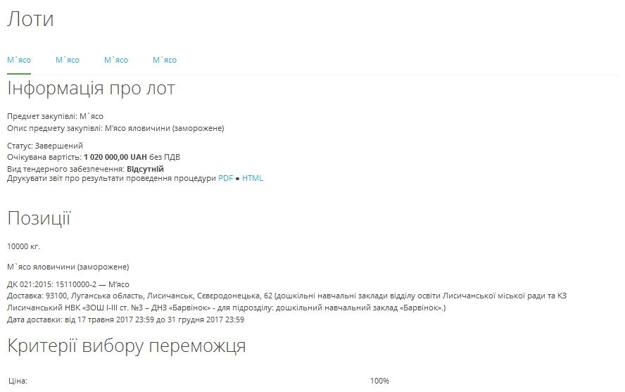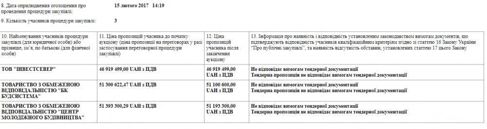 Якщо перейти за посиланням в таблиці на другий «доконаний» тендер, то побачимо хто брав участь в тендері й переміг: