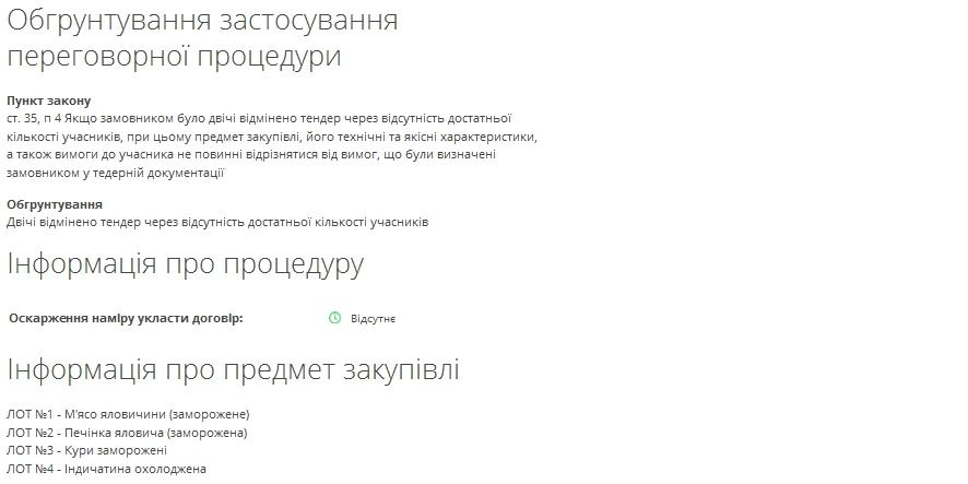 - Інформація про лот, найменування, сума, обсяг, умови постачання.