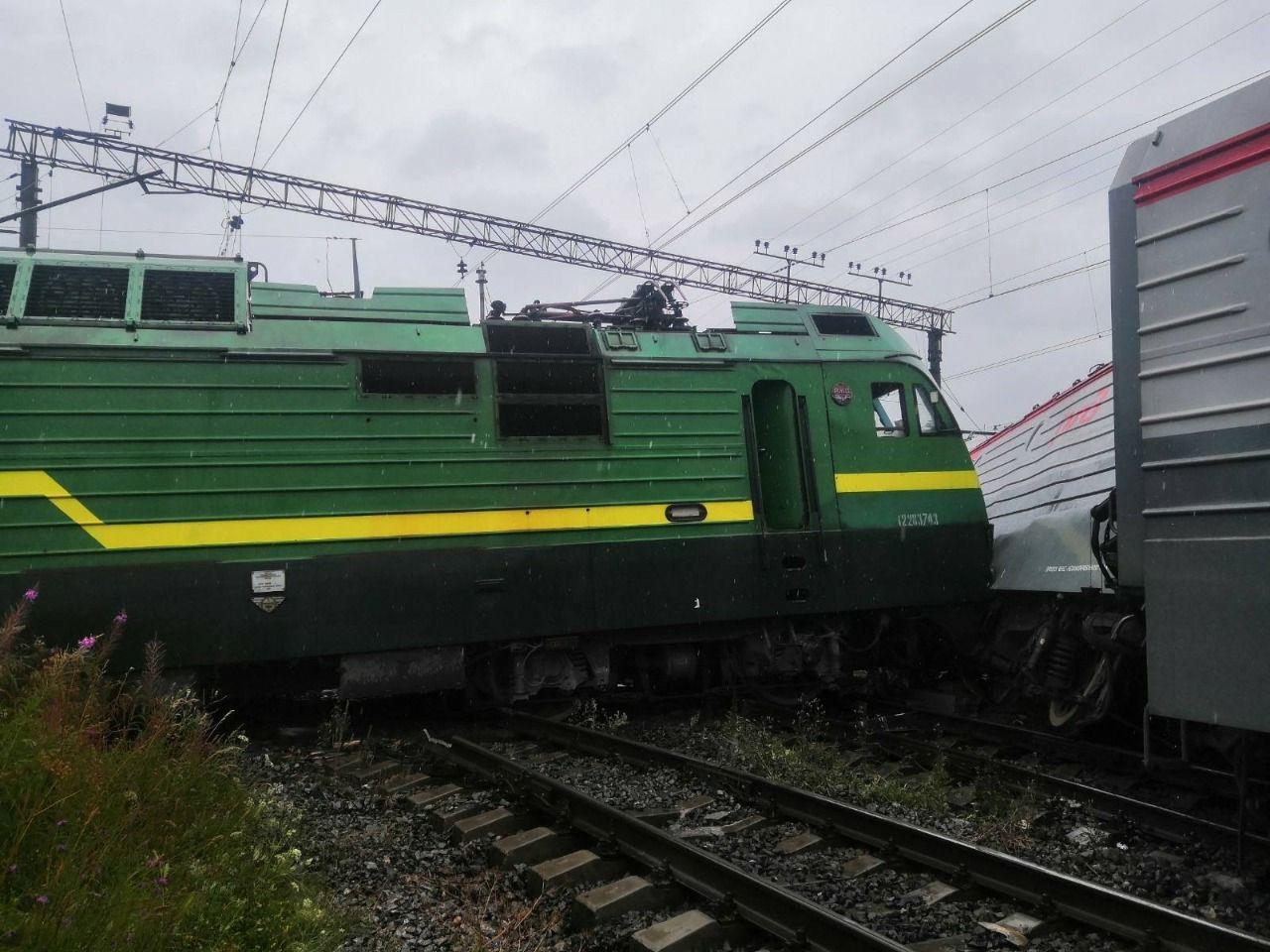 Як повідомили в МНС РФ, відбулося дотичне зіткнення двох вантажних потягів №3812 і №1255 з подальшим сходом з рейок двох електровозів і одного порожнього напіввагона.