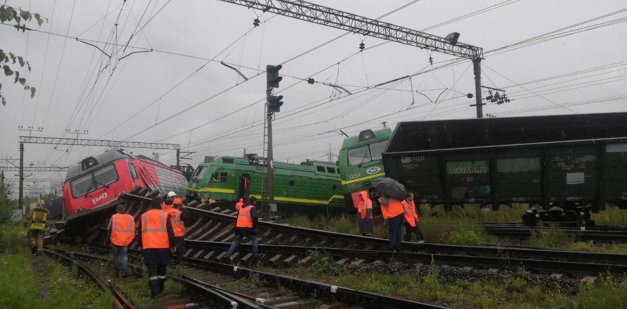 У Санкт-Петербурзі у Фрунзенському районі на станції Купчинська 28 липня зіткнулися і зійшли з рейок два товарні потяги.