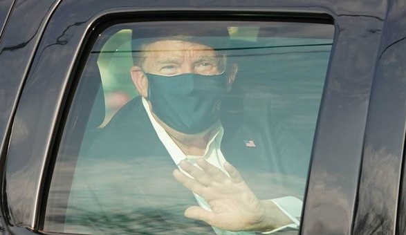 Раніше сьогодні Трамп на деякий час вийшов з госпіталю і проїхав на автомобілі біля своїх прихильників, які зібралися біля лікарні. При цьому він не виходив з машини і був в масці. За словами Трампа, таким чином він подякував тим, хто його підтримує.