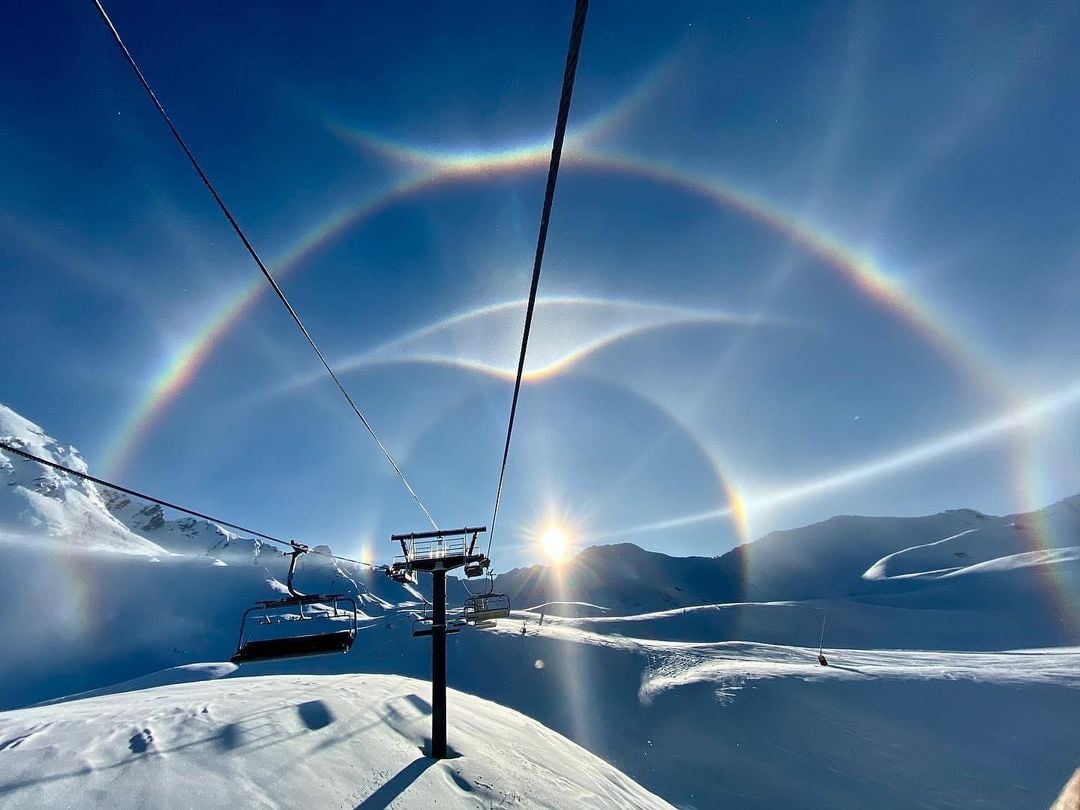 На сході Швейцарії поблизу міста Давос 13 грудня спостерігалося унікальне "множинне" гало. Сонячне світло утворило безліч дуг і петель навколо світила.