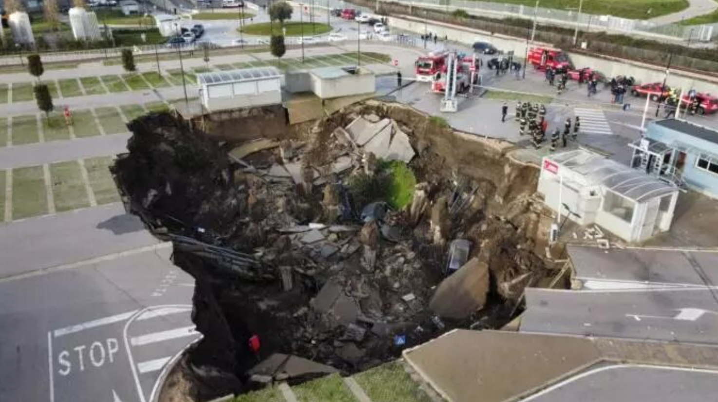В італійському місті Неаполь на парковці біля лікарні Понтічеллі сталося обвалення землі. У величезну воронку разом з асфальтом пішли три автомобілі. Повідомляється про відсутність постраждалих людей.