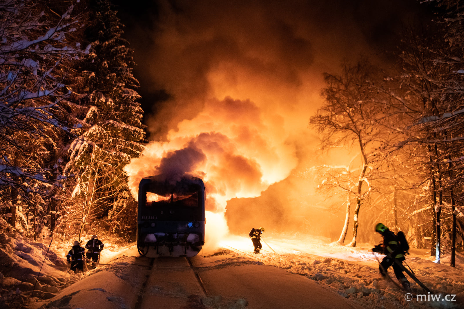 Вогонь розгорівся, коли поїзд тільки від'їхав від міста Хршибська, пасажирів встигли вивести з вагонів ще до приїзду пожежників.