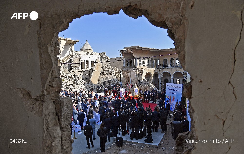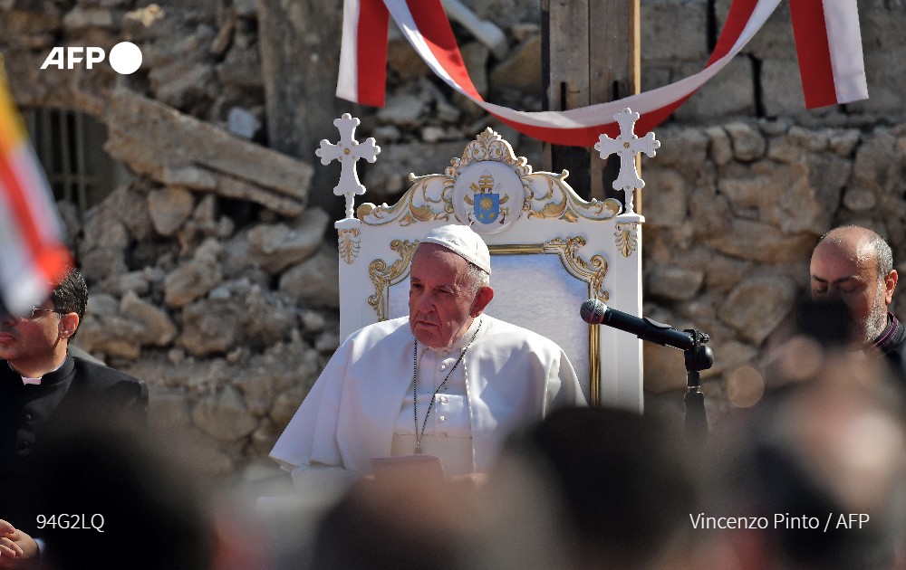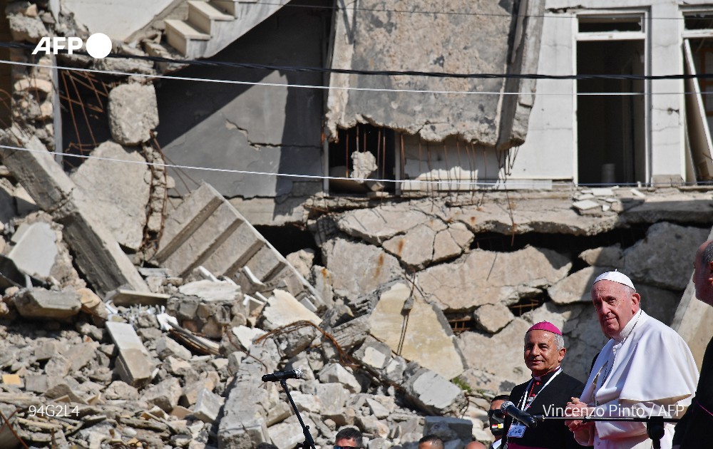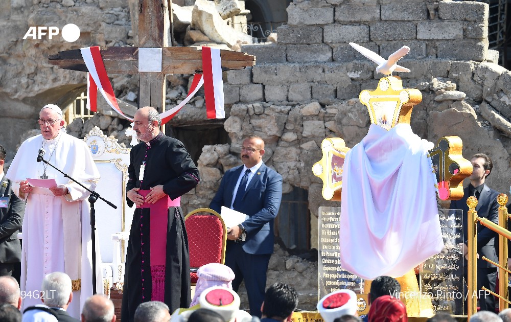 Біля зруйнованої багатовікової церкви Аль-Тахера (Непорочного зачаття) Франциск помолився за всіх жертв війни, а також закликав християн Іраку і Близького Сходу залишитися на своїй батьківщині.