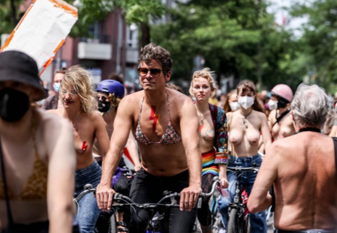 У Берліні відбувся незвичайний велопробіг, на якому десятки жінок прокотилися вулицями міста топлес. Дану акцію влаштували після того, як поліцейські вигнали з міського парку жінку, яка засмагала там з оголеними грудьми.
