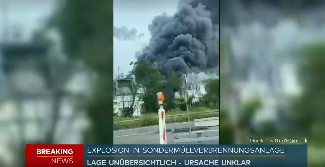 Вибух стався сьогодні близько 9:30 ранку за місцевим часом на сміттєспалювальній ділянці. За даними міської влади, після вибуху загорівся резервуар з розчинниками. В небо піднялася гігантська хмара диму.