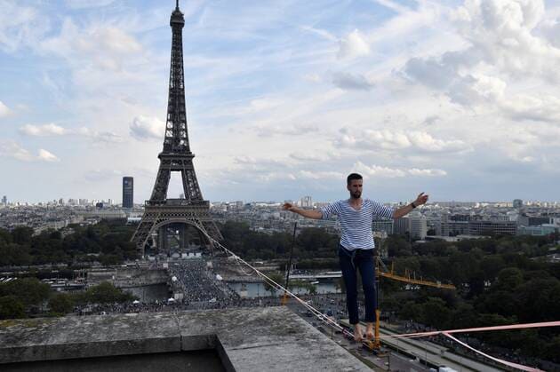 Паризький канатоходець Натан Полін пройшов відстань у 670 метрів по канату, натягнутому між Ейфелевою вежею і Національним театром Шайо.