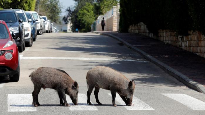 На одному з відео відображені 12 кабанів, помічені в північній частині міста. Вони повністю "урбанізовані" - не бояться людей і навіть транспорту. Ще одне відео з камери спостереження демонструє не менш відчайдушних тварин, які бродять у пошуках їжі.