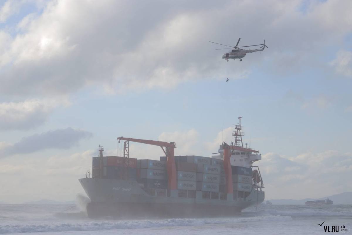 У районі російського Владивостока під час шторму сів на мілину контейнеровоз Rise Shine, що ходить під прапором Панами.