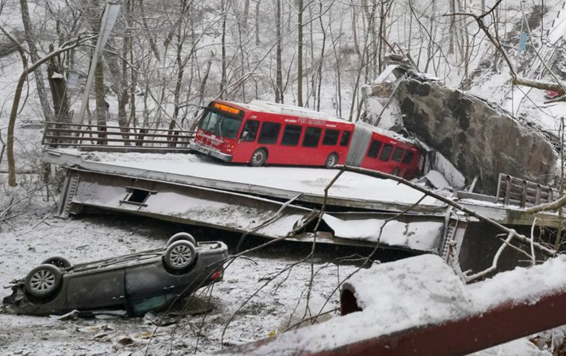 У Піттсбурзі 50-річний міст обрушився рано вранці 28 січня - всього за кілька годин до запланованого приїзду президента Джо Байдена, який повинен був обговорити інфраструктурні проєкти, які, серед іншого, передбачають виділення коштів на ремонт мостів та доріг, повідомляє Час Пік з посиланням на зарубіжні ЗМІ.