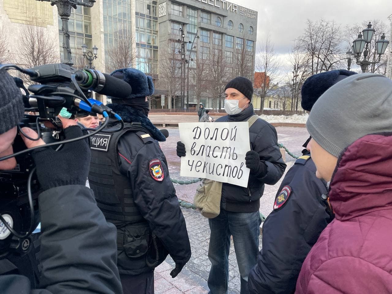 У той же час на Пушкінській площі в Москві члени "Союзу письменників", які "всі ці роки їздять на Донбас", від імені "російських письменників" провели одиночні пікети на підтримку "російського Донбасу". У них поліцейські лише перевірили документи.