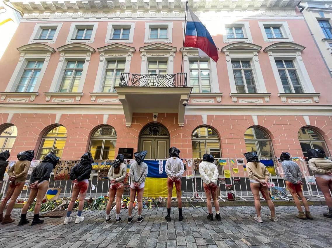 Акції протесту проти російської агресії в Україні продовжуються вже третій день перед посольством Росії в Таллінні. Сьогодні кілька десятків жінок зібралися перед будівлею посольства на вулиці Пікк, щоби привернути увагу до жорстокого поводження російських солдатів з жінками та дітьми в Україні.