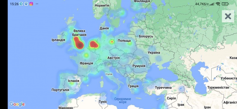 Про це свідчать дані сервісу Downdetector, передає Час Пік.