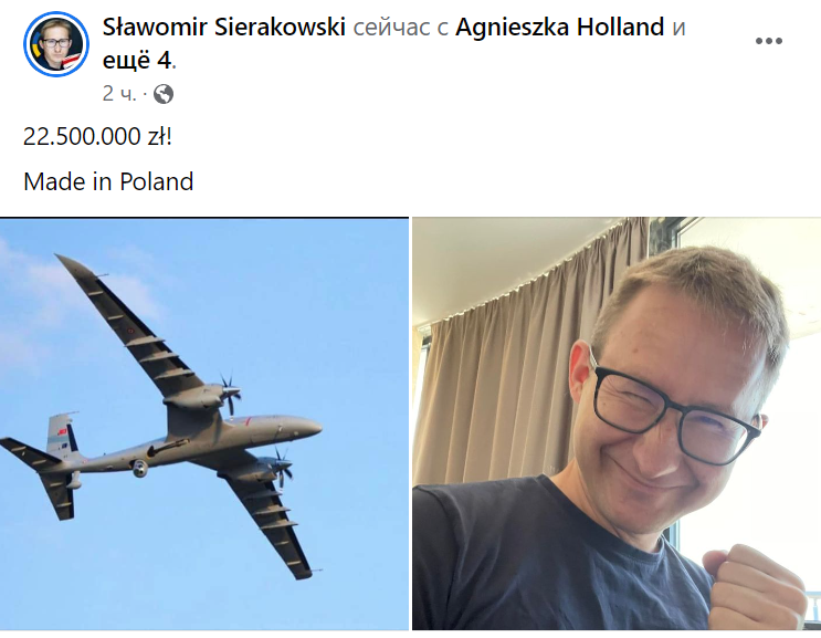 Сьогодні Сераковський повідомив у Фейсбуці, що на Bayraktar для України зібрано суму в 22,5 млн злотих (близько 4,8 млн доларів).