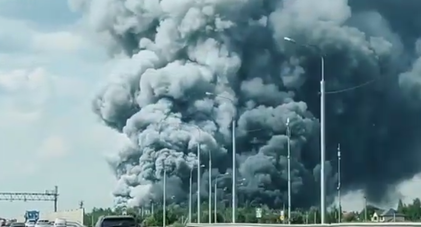 У місті Істра в районі Новоризького шосе Підмосков'я горить склад великого інтернет-магазину Ozon.