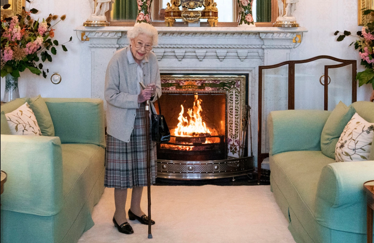 На фото Єлизавета ІІ з тростиною. Зазначається, що незадовго до смерті у неї виникли проблеми з мобільністю. При цьому королева виглядає життєрадісно та посміхається.