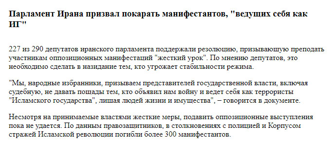 В Ірані збираються страчувати всіх затриманих протестувальників, а це близько 14 тисяч людей. За це рішення проголосували 227 із 290 депутатів парламенту.