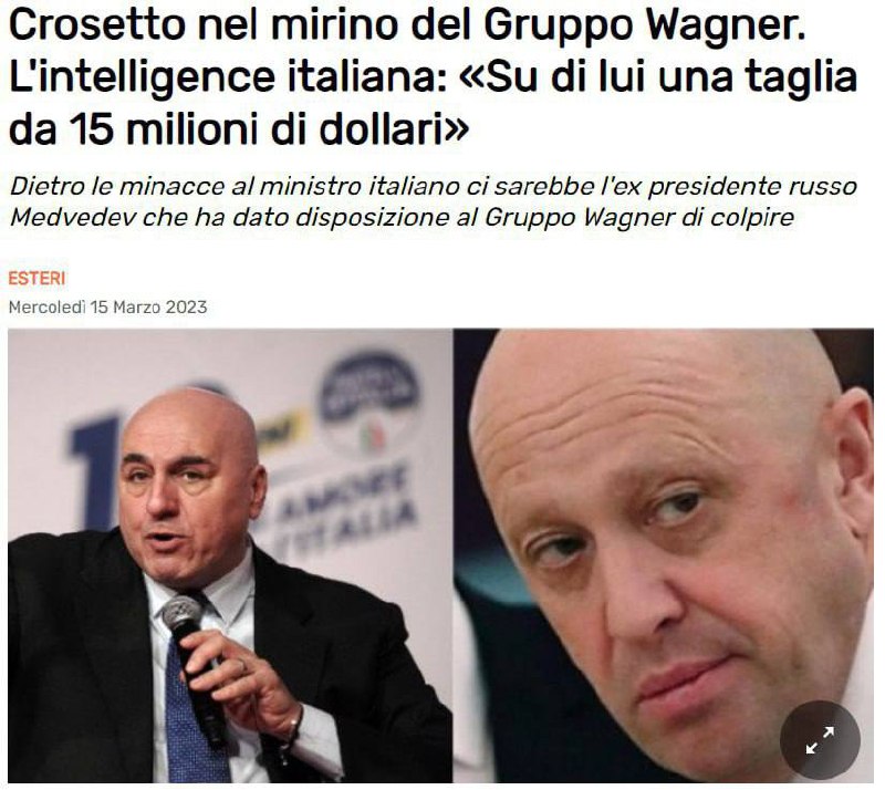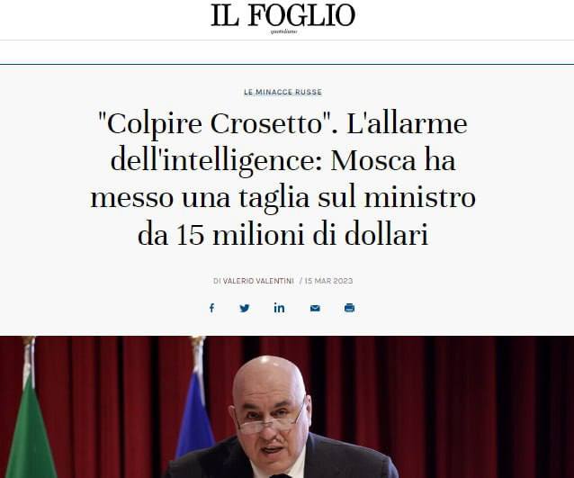 У розвідці вважають, що за погрозами на адресу Крозетто стоїть не хто інший, як Дмитро Медведєв, колишній президент Росії, який 28 січня 2022 року назвав італійського міністра "рідким дурнем", оскільки той заявив про те, що РФ може розпочати війну проти України.