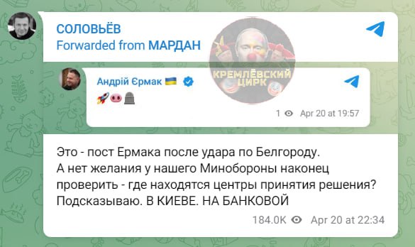 Увечері 20 квітня у російському Бєлгороді стався вибух, на одній із вулиць міста утворилася 20-метрова вирва.