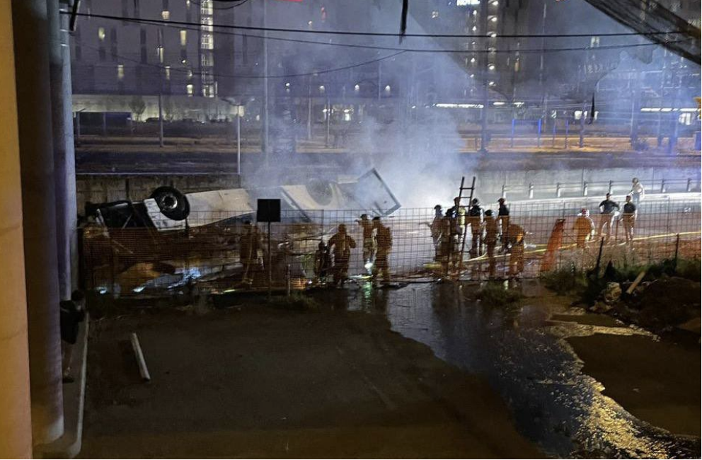 Автобус впав біля залізничної колії, після чого, імовірно, торкнувся електричних кабелів і загорівся. Щодо причини аварії висунули декілька гіпотез: хвороба водія, оскільки слідів гальмування на дорозі немає, або неправильний маневр на місці ремонту шляхопроводу.