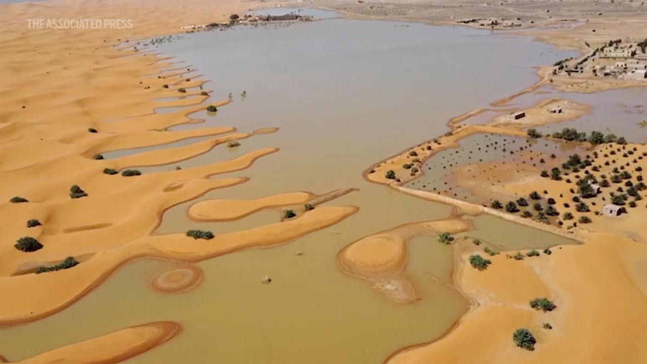 Незвичайні зливи охопили пустельні райони Північної Африки, завдавши серйозних наслідків, зокрема в селі Мерзуга в Марокко. За короткий проміжок часу тут випало до 99 літрів опадів на квадратний метр, що стало рекордом за останні 30-50 років. Це призвело до утворення озер у традиційно сухому ландшафті Сахари.