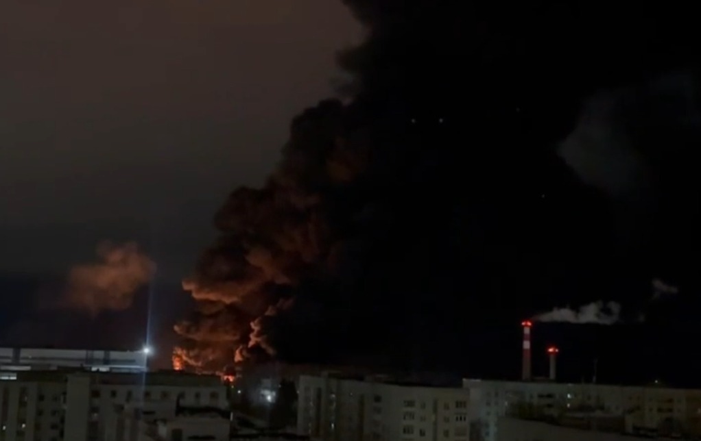 За даними OSINT-аналітиків, у нафтобазу влучило 2 БПЛА. Відео, опубліковане очевидцями, підтверджують масштабну пожежу. Ймовірно, горить пошкоджений резервуар.