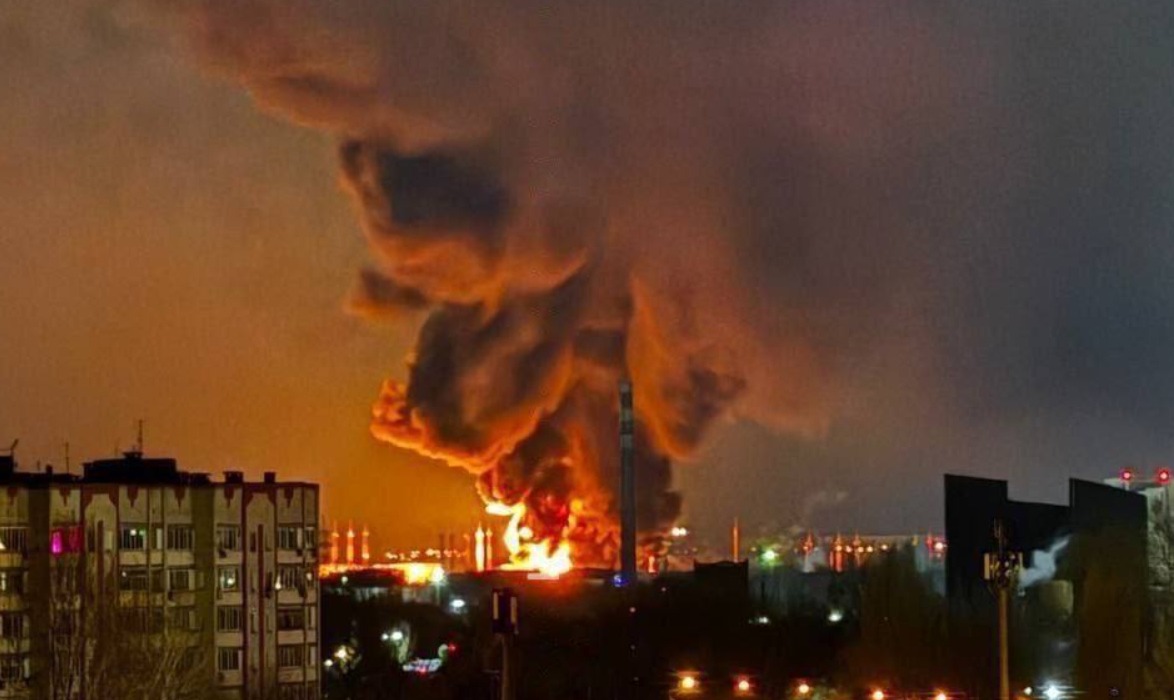 Нафтобаза комбінату "Кристал" в Енгельсі була атакована безпілотниками в ніч проти 8 грудня. З того часу пожежа не припинялася, повідомляє Час Пік.