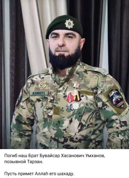 Першим про загибель Умханова повідомив командир формування "Ахмату" Апті Алаудінов.