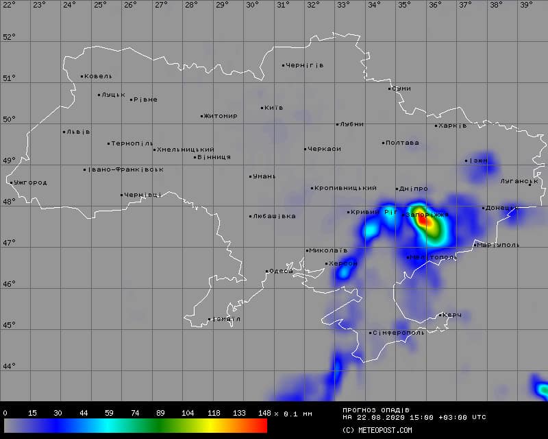 Завтра, 22 серпня, короткі зливи з грозами найбільш ймовірні на Миколаївщині, Херсонщині, Запоріжжі, в Криму, на Донеччині, Луганщині, а також досягатимуть Дніпра з районами. На решті території буде сухо.