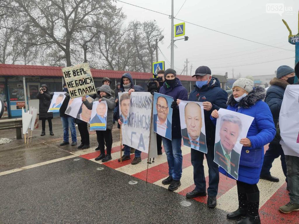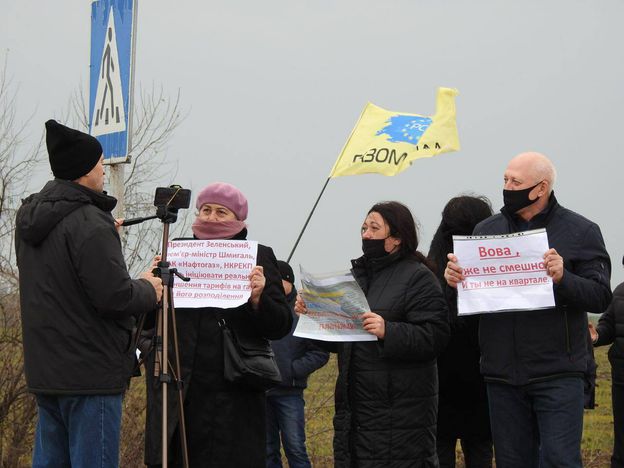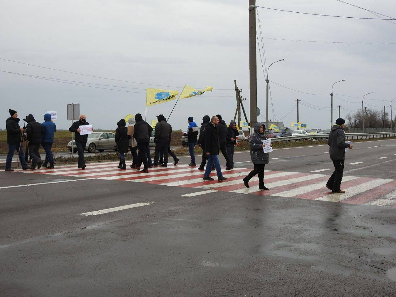 Також була перекрита траса під Херсоном. Кілька десятків людей вийшли на акцію з плакатами із зверненнями до президента і уряду.
