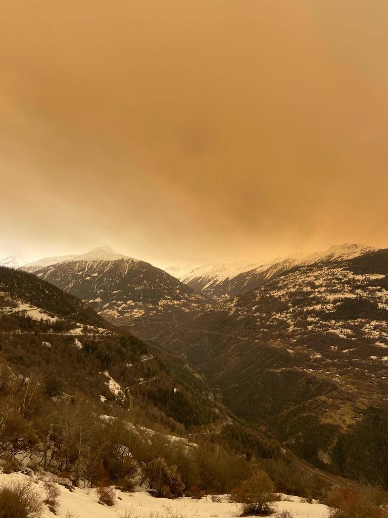 Вчора, 6 лютого в Альпах можна було спостерігати вражаючу картину: сніг набув коричневого відтінку, а навколишні краєвиди виглядали, немов інша планета.