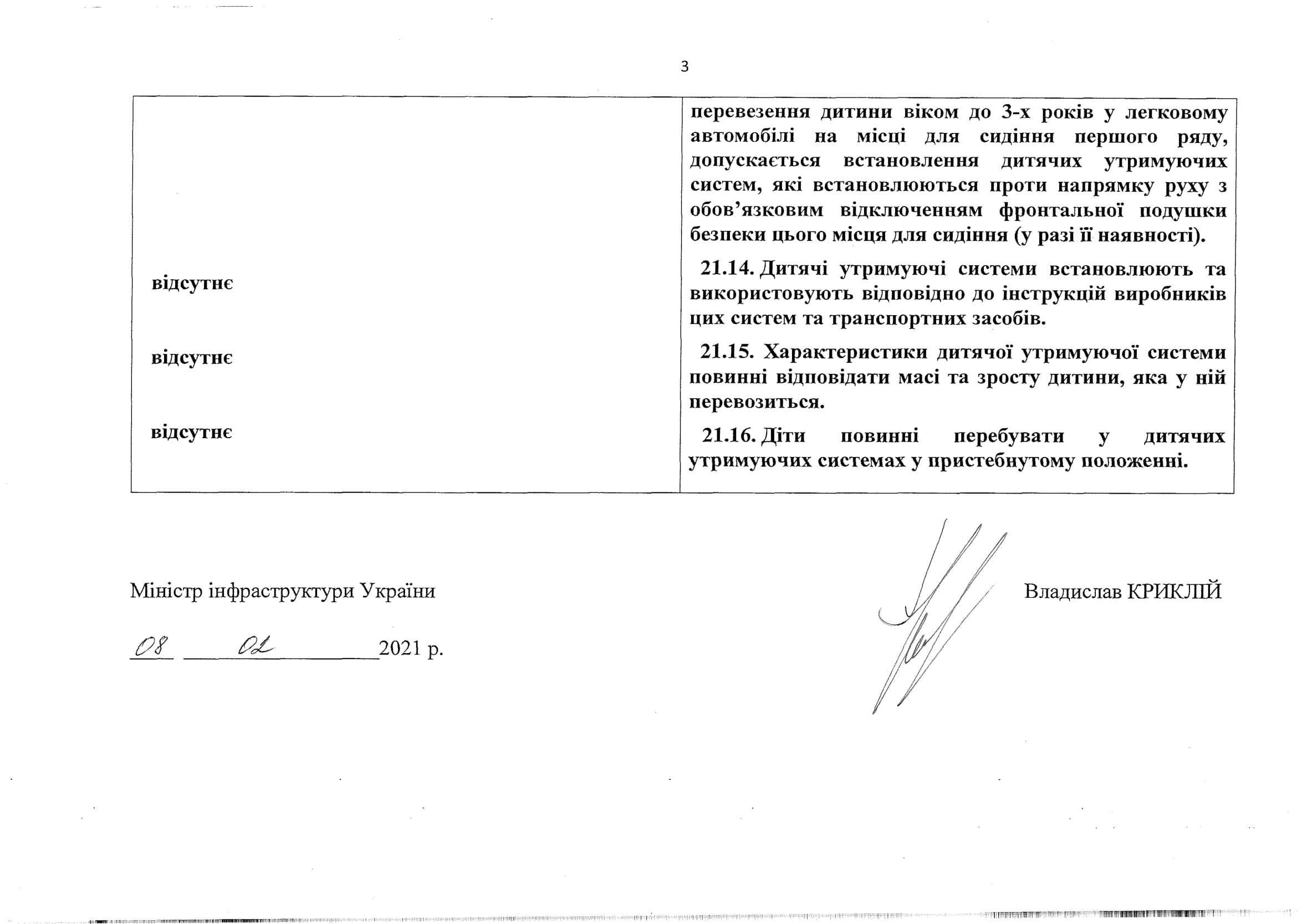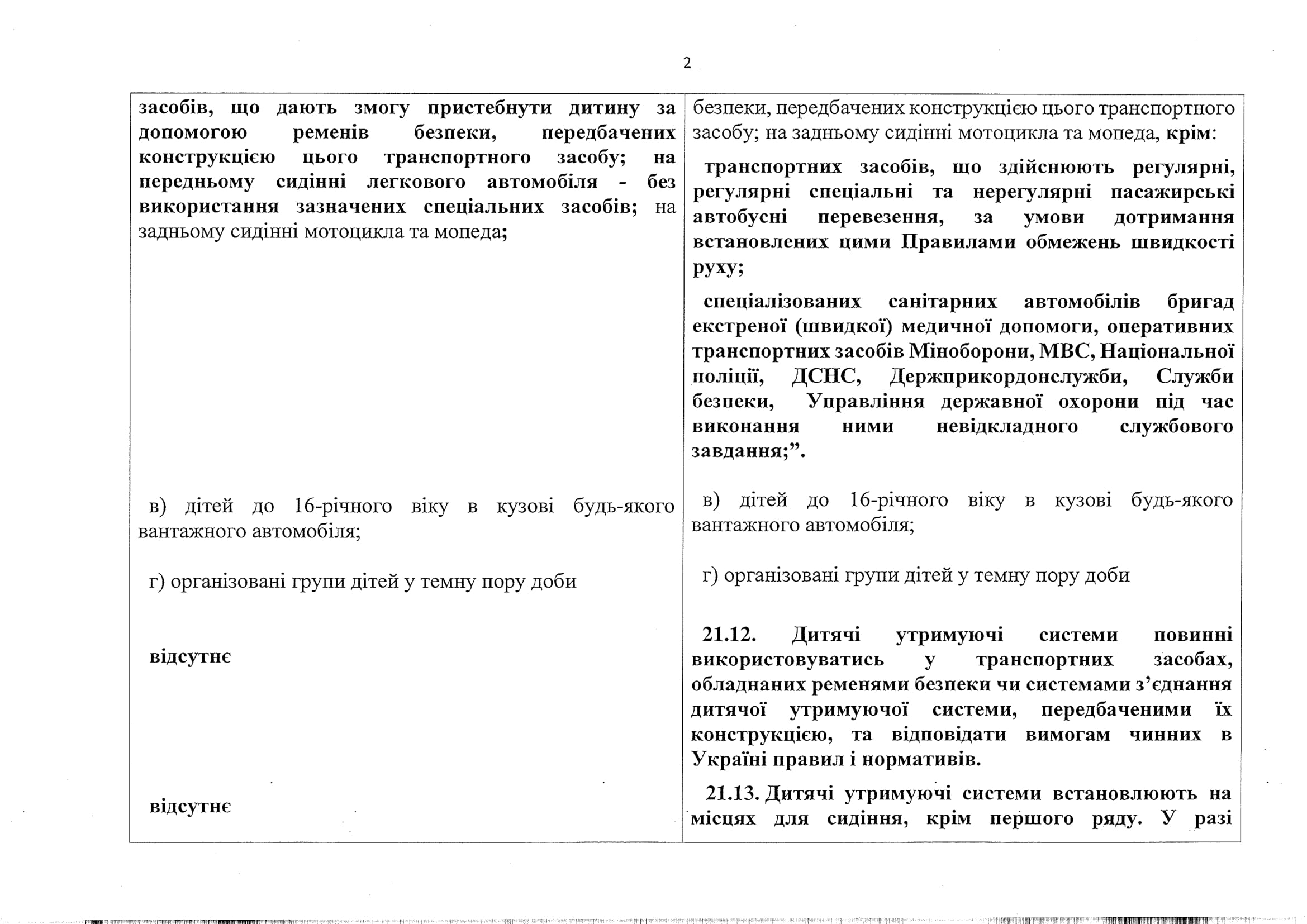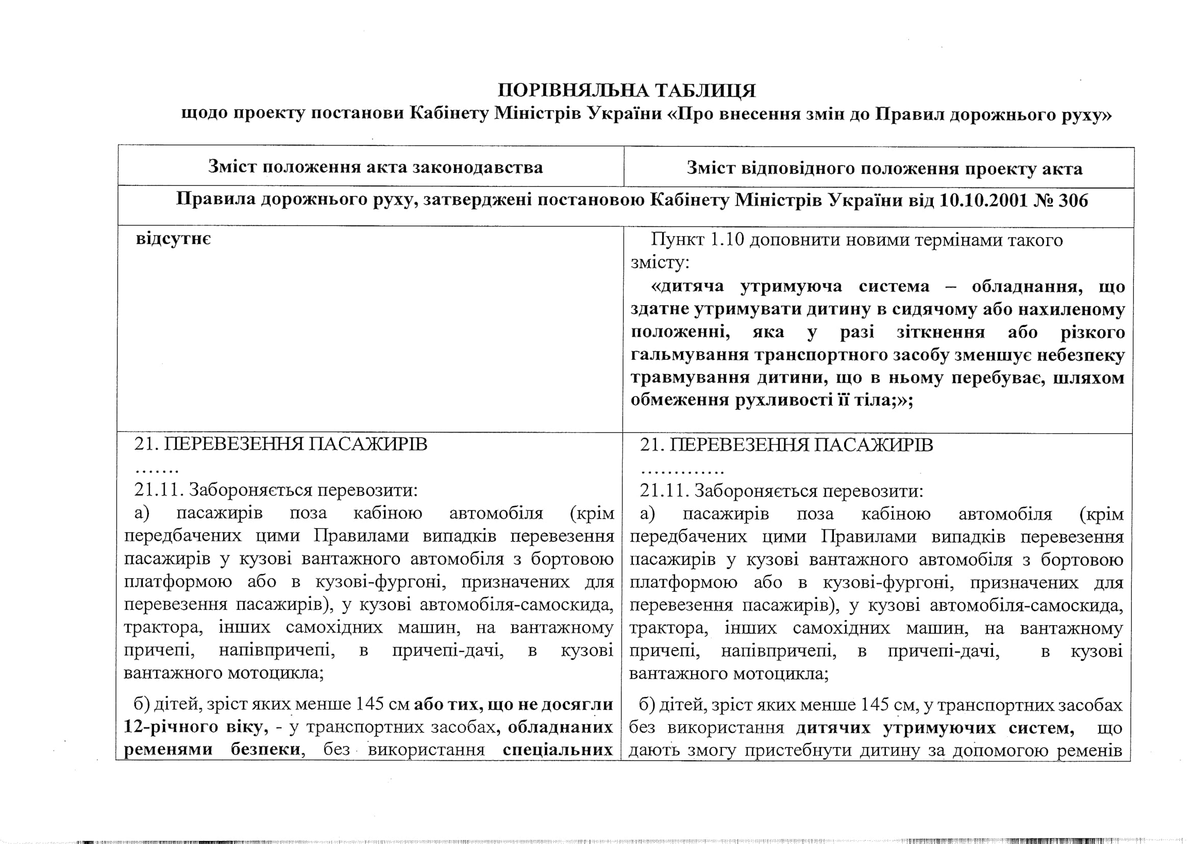 Згідно з постановою, до Правил дорожнього руху вноситься термін "дитяча утримуюча система". Забороняється перевозити дітей, зріст яких менше 145 см, у транспортних засобах без використання дитячих утримуючих систем. З попередньої редакції прибрали норму щодо обов'язкового перевезення у автокріслах дітей до 12 років незалежно від зросту.
