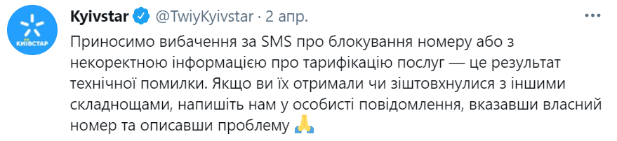 У компанії "Київстар" вибачилися за некоректні СМС, заявивши, що це - результат технічної помилки. Абонентів, які зіткнулися з труднощами, попросили зв'язатися з техпідтримкою.